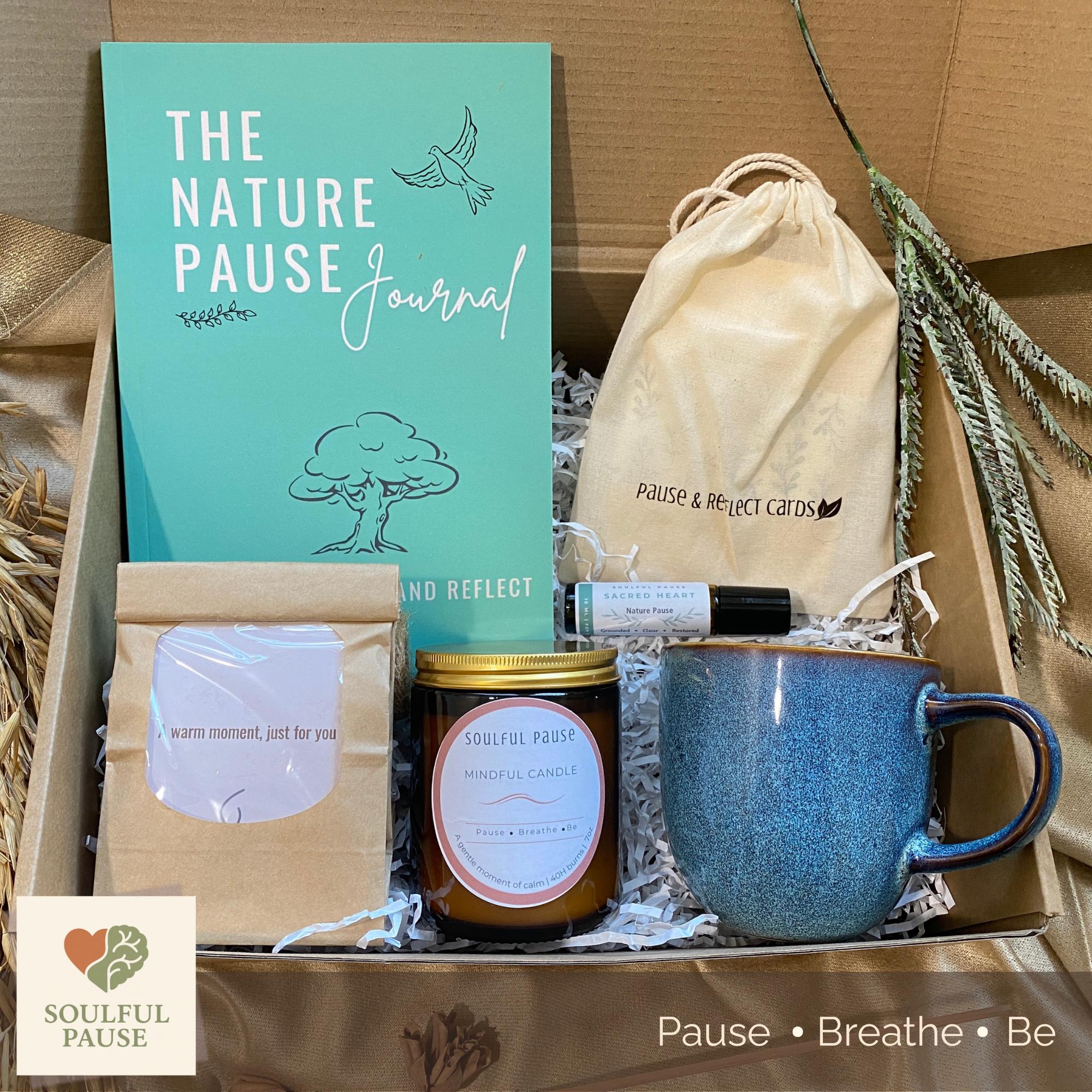 The Nature Pause Box is a grounding self-care experience designed to help you slow down, reconnect, and feel calm again—like stepping outside into fresh air, even when you're indoors.
