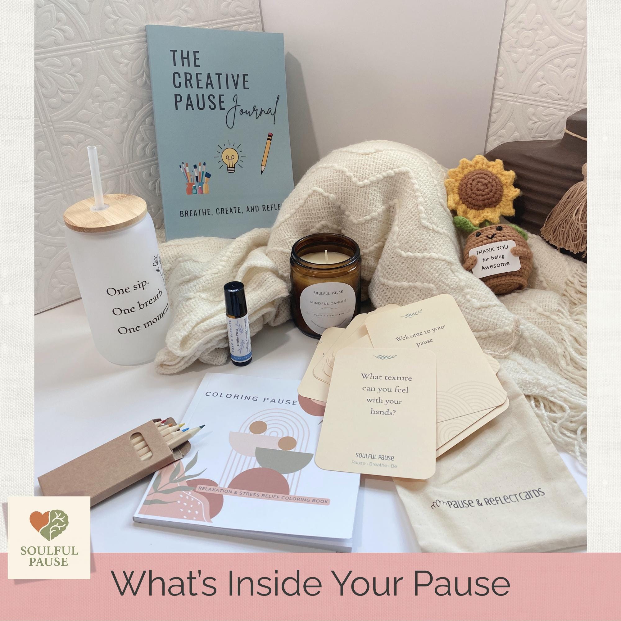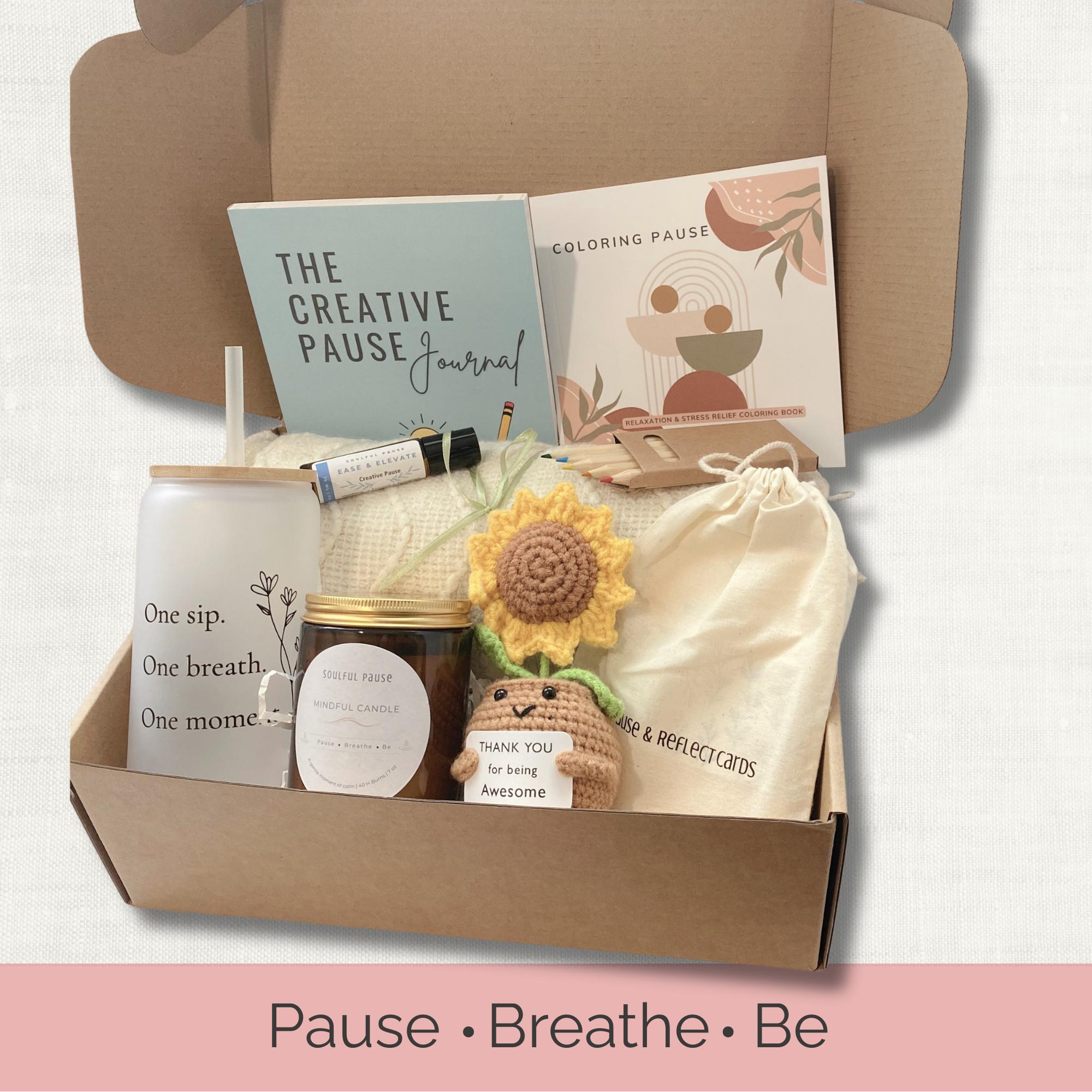 This Creative Pause Box is a calming self-care gift designed to reduce stress and spark mindful creativity